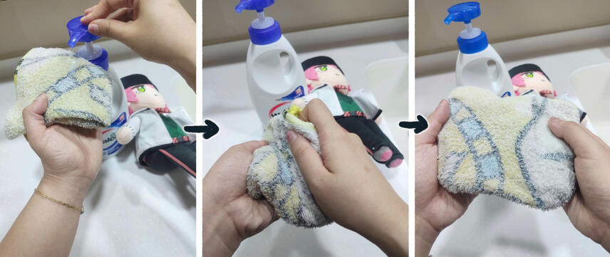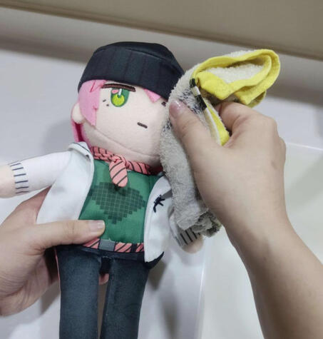 During the manufacturing plushies might be put on the floor, so it's a good idea to clean them when they arrive.‣ A clean towel‣ Liquid detergent with a neutral pH