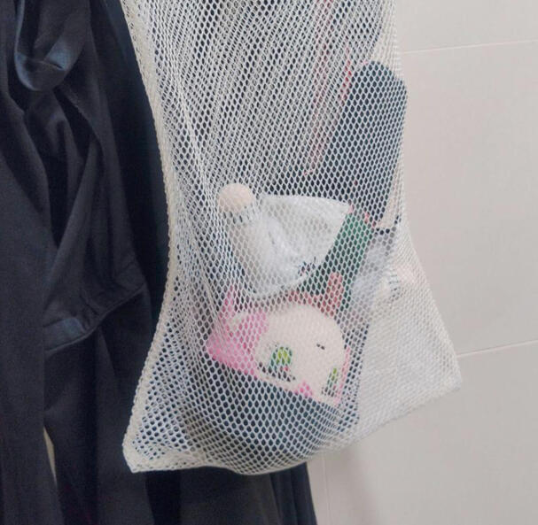 Your plushie should now be clean and slightly damp on the surface but not very wet! (If it is very wet, remove as much water as possible with a dry towel.)Place it in a mesh bag, and hang it up to dry. If you do not have a mesh bag, you can hang it up in a dry towel to dry, but remember to flip it over so both sides will dry properly.